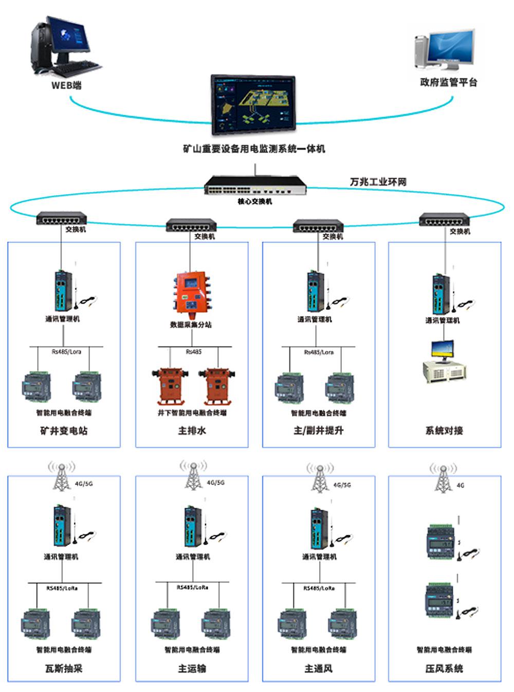 矿山(煤矿)重要设备用电监测系统架构图: