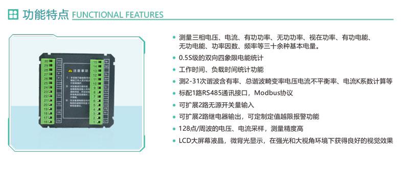1.测量三相电压、电流、有功功率、无功功率、视在功率、有功电能、