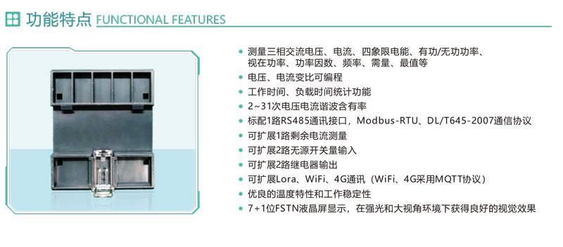 1.测量三相交流电压、电流、四象限电能、有功/无功功率、