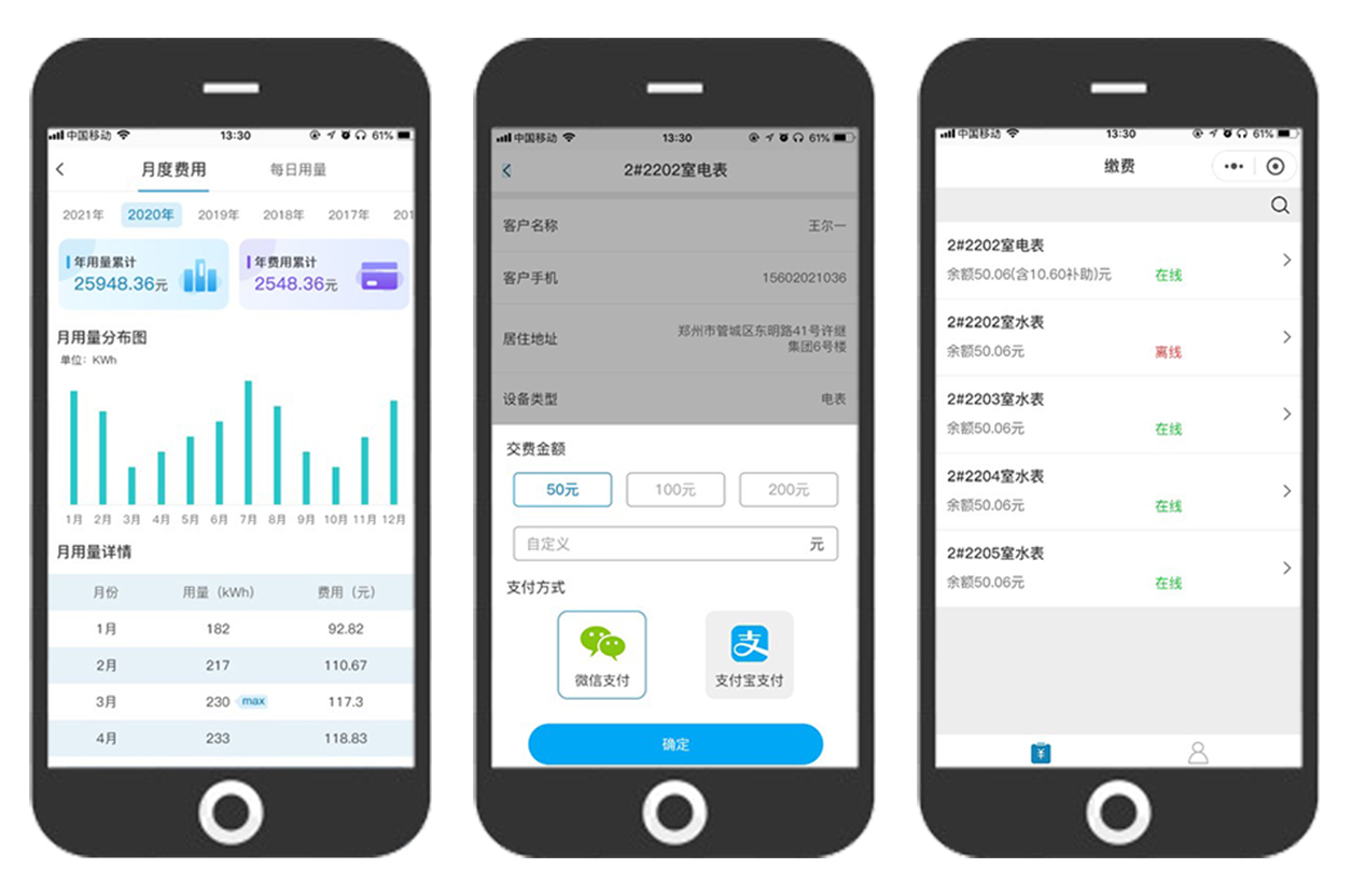 微信小程序+手机APP,电费账单一手掌握,足不出户预缴电费,免除线下缴费排队之忧,节约收费管理成本。