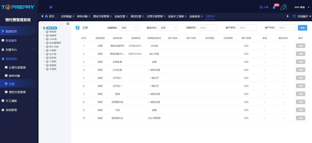 预付费管理系统功能