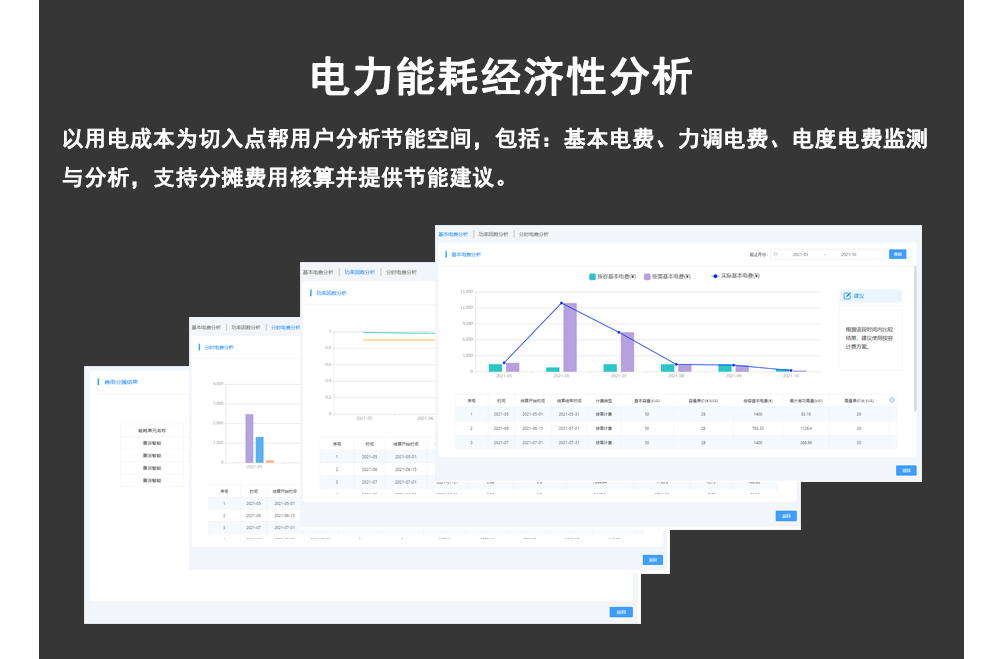电费优化管理系统,能够解决采用两部制电价的大工业用电企业容需电费分析(基本电费)、分时电费分析(电度电费)、力调电费分析等电费优化问题,提供度电成本核算、降费潜力分析、优化建议、变损分析、负荷特性分析等多维度分析方案,并自动生成月度电费优化报告,让大工业用户的电费管理更加科学合理!