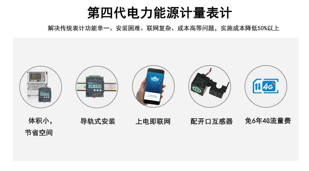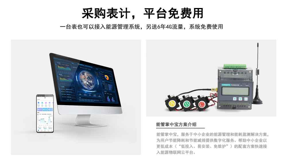 新型智能电表安装方便,开口式互感器、免布线安装,内置4G/GPRS无线模块,无需额外配置采集设备, 使用户可以低成本的应用我们的服务,购买电表还可免费赠送配套的能管掌中宝系统。