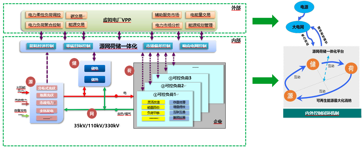 n 外部交互:对外与大电网间进行交互,在电网电力供应同时,作为大电网的调节响应,为大电网提供电力辅助服务支撑。