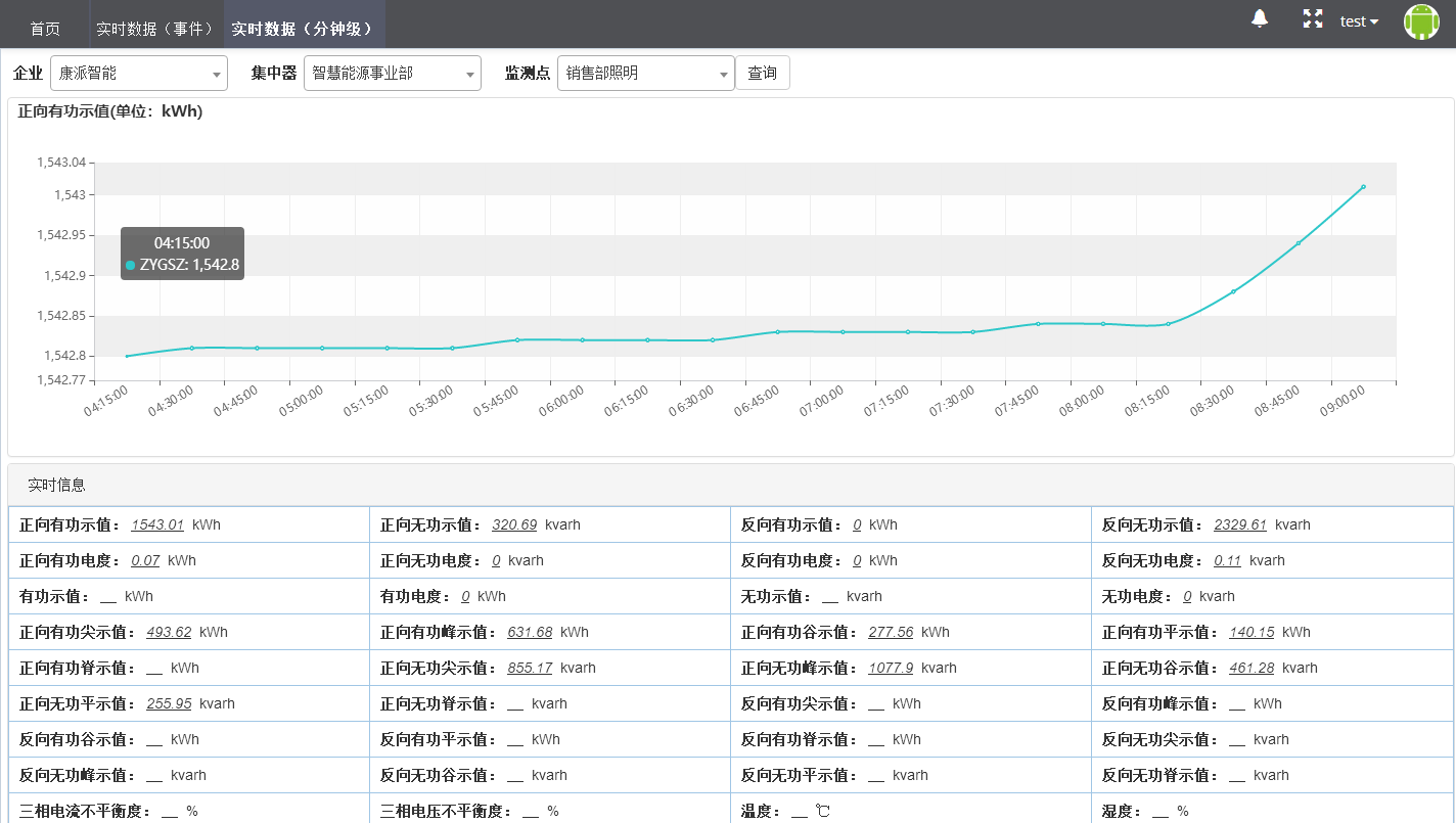 实时掌握各个用能设备实时数据、设备性能及状态、各路负载使用情况。