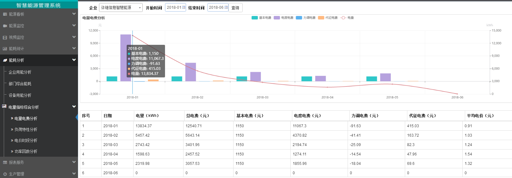 能源管理系统-电费电量分析