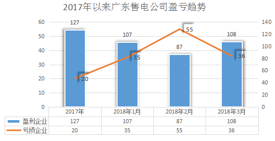 作为第一批列入全国售电侧改革试点的省份,广东引领了全国的电力改革,吸引了众多行业内人士的目光,售电市场活跃。然而进入2018年,广东的售电市场出现了疲软回落现象,1月有35家售电公司出现亏损,2月,售电公司大范围亏损,净亏达到3600万元,之后几个月虽有所好转,但依旧是收利甚微。