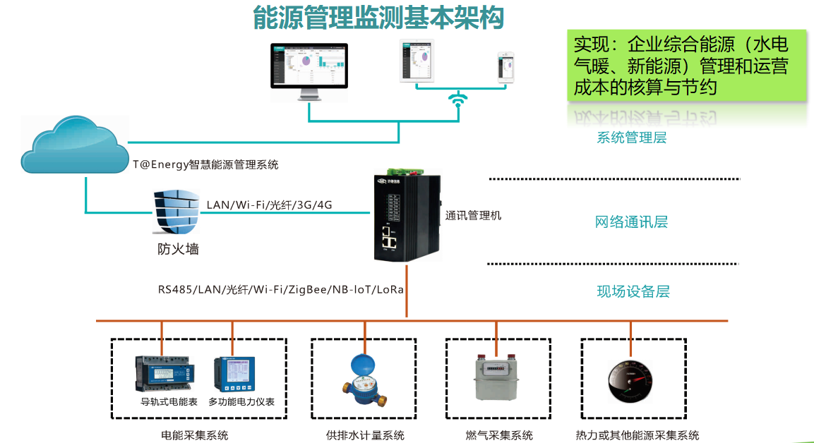 T@Energy 智慧能源管理系统则侧重于企业综合能源(水电气暖、新能源)管理和运营成本的核算与节约。