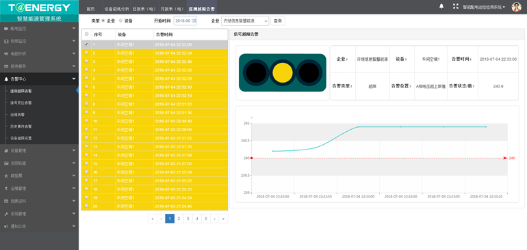 T@Power智能配电运检监测管理系统是遵循电力系统的标准规范而进行开发的智能电能管理系统,具有稳定性强、易使用、自动化程度高等特点,该系统主要偏重于企业配电的运维管理,其核心功能分为6大板块:能源看板、配电监控、电能分析、生产管理、告警中心、报表服务。