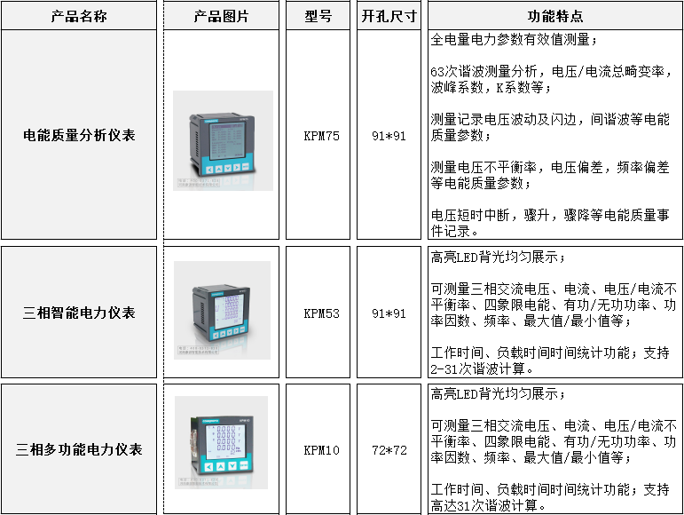 底层智能仪表采用KPM53系列、KPM73系列智能仪表。KPM73多功能仪表具有双向四象限电能计量、统计、记录等功能,集三相电参量测量/显示、电能、累计、复费率统计于一体,具有点磁兼容好、LCD液晶大屏幕显示等优点。