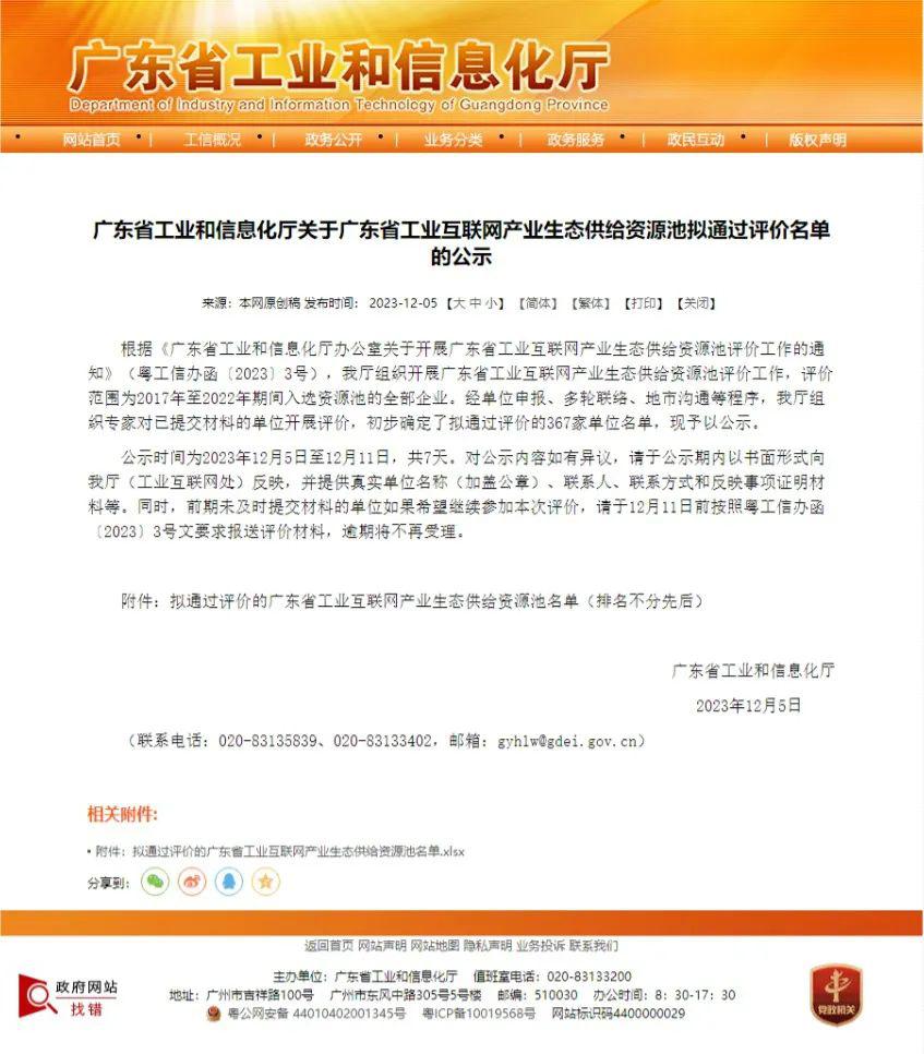 喜报丨澳门金沙娱乐官网成功入选广东省工业互联网产业生态供给资源池